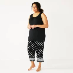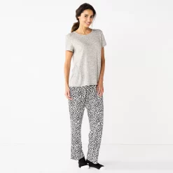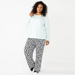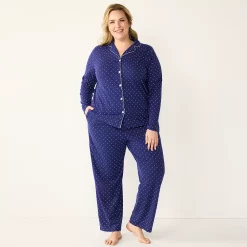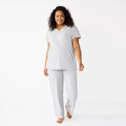 Plus Size Croft & Barrow® Cozy Short Sleeve Button-Front Pajama Top & Pajama Pants Sleep Set
