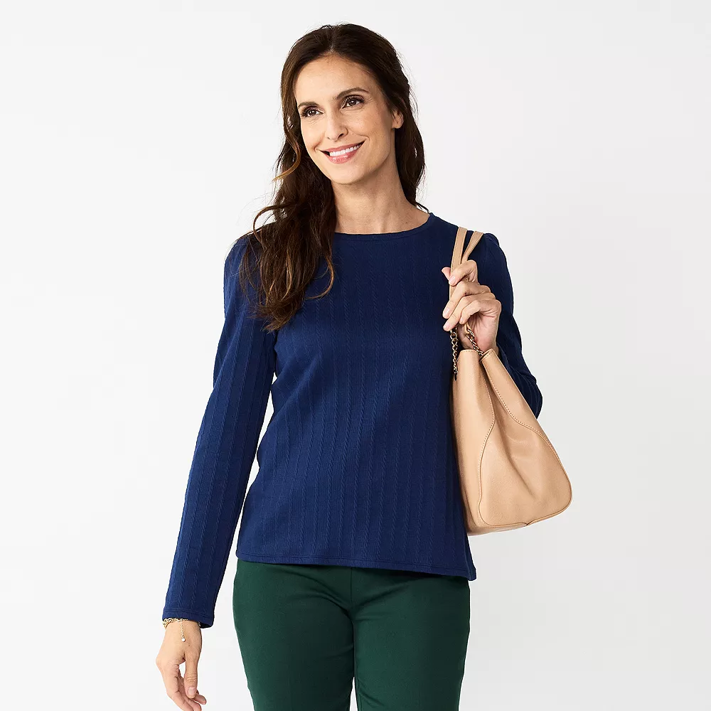 This women’s petite top from Croft & Barrow gives you stylish versatility.