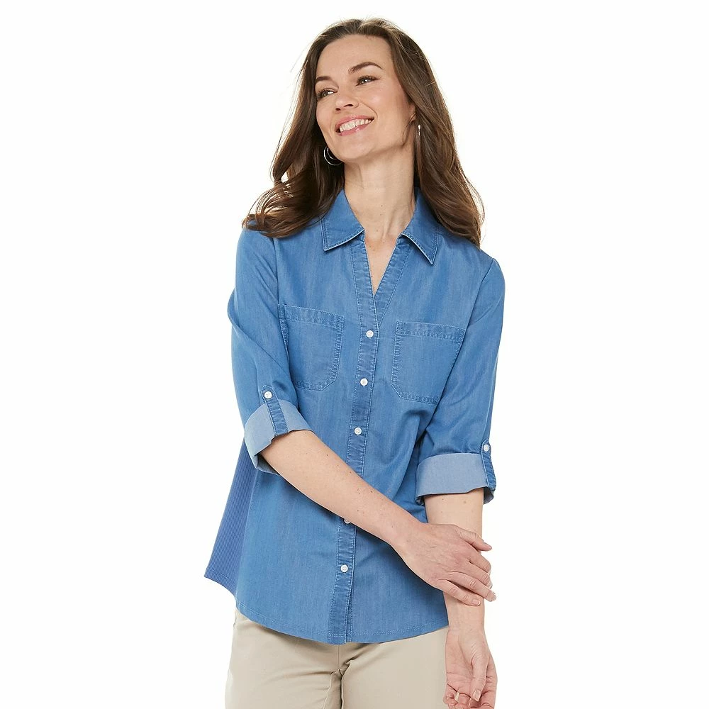 Update your casual wardrobe with this petites’ Croft & Barrow knit-to-fit shirt.