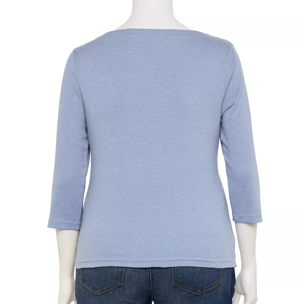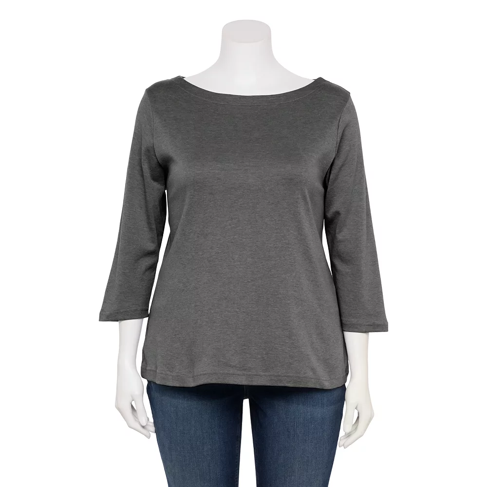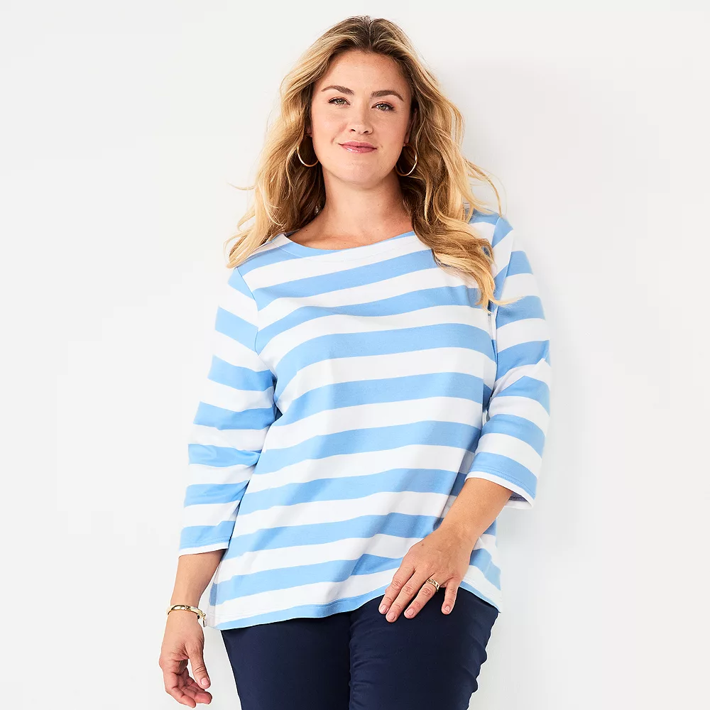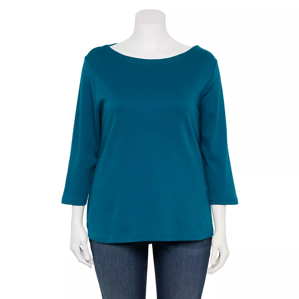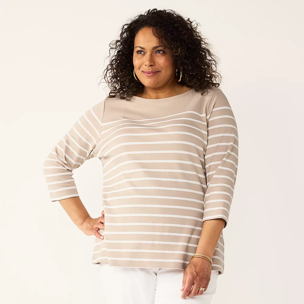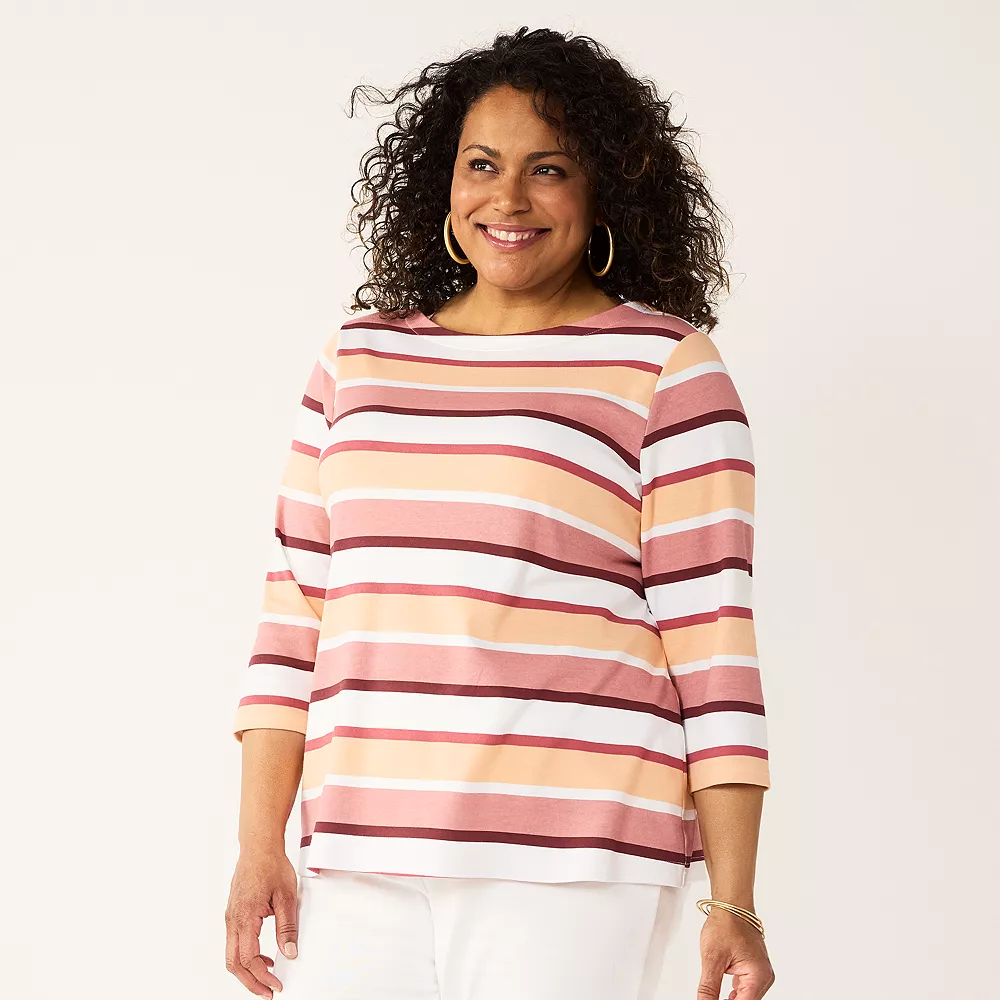 Update your casual wardrobe with this women’s plus size boatneck tee from Croft & Barrow.