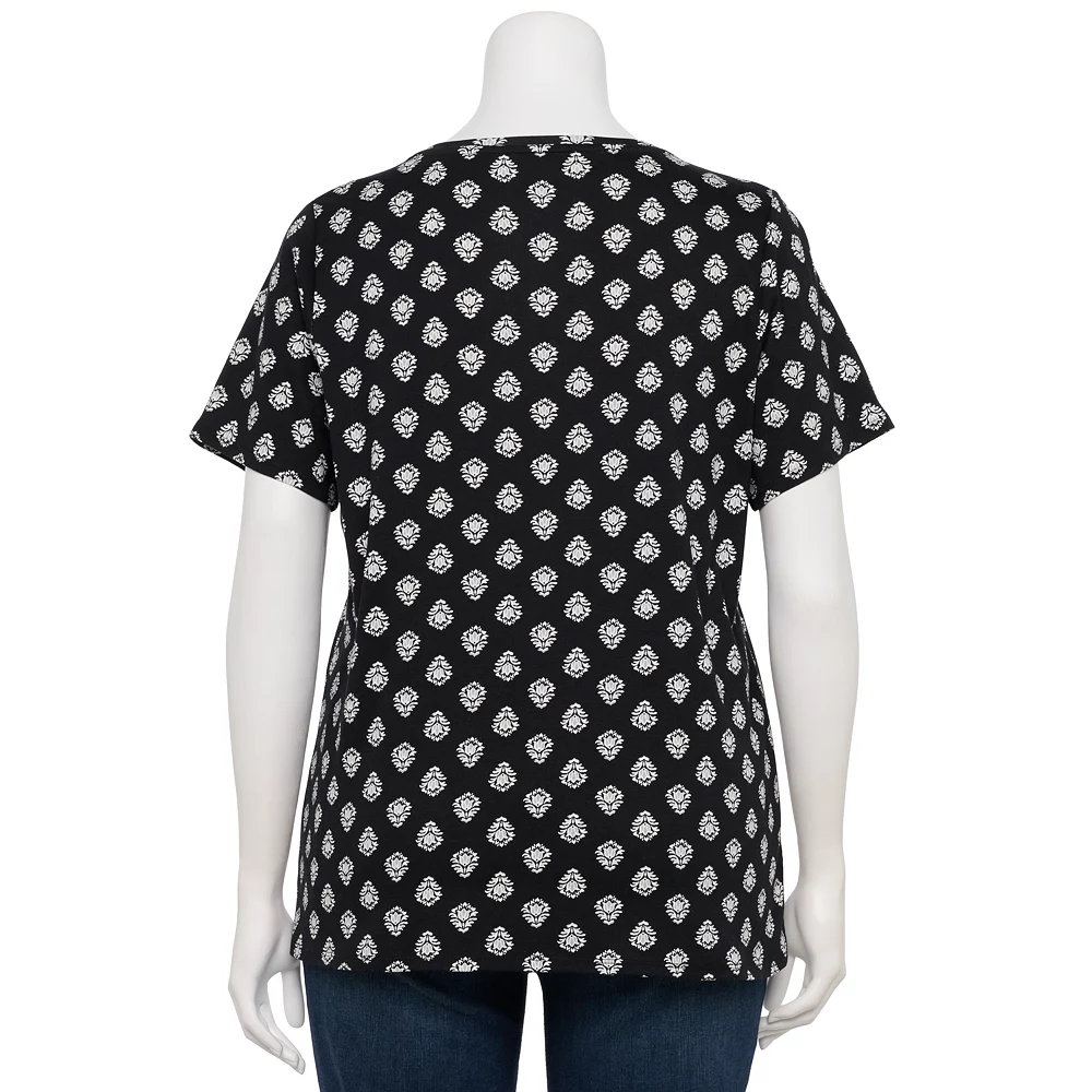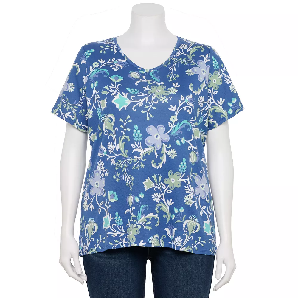 Croft & Barrow delivers a classically stylish look with this essential women’s print v-neck tee.