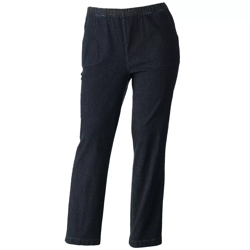 Pull-on comfort. With an elastic waistband for comfort and a tapered leg opening for a slimming fit, these pull-on denim pants will become a wardrobe staple.