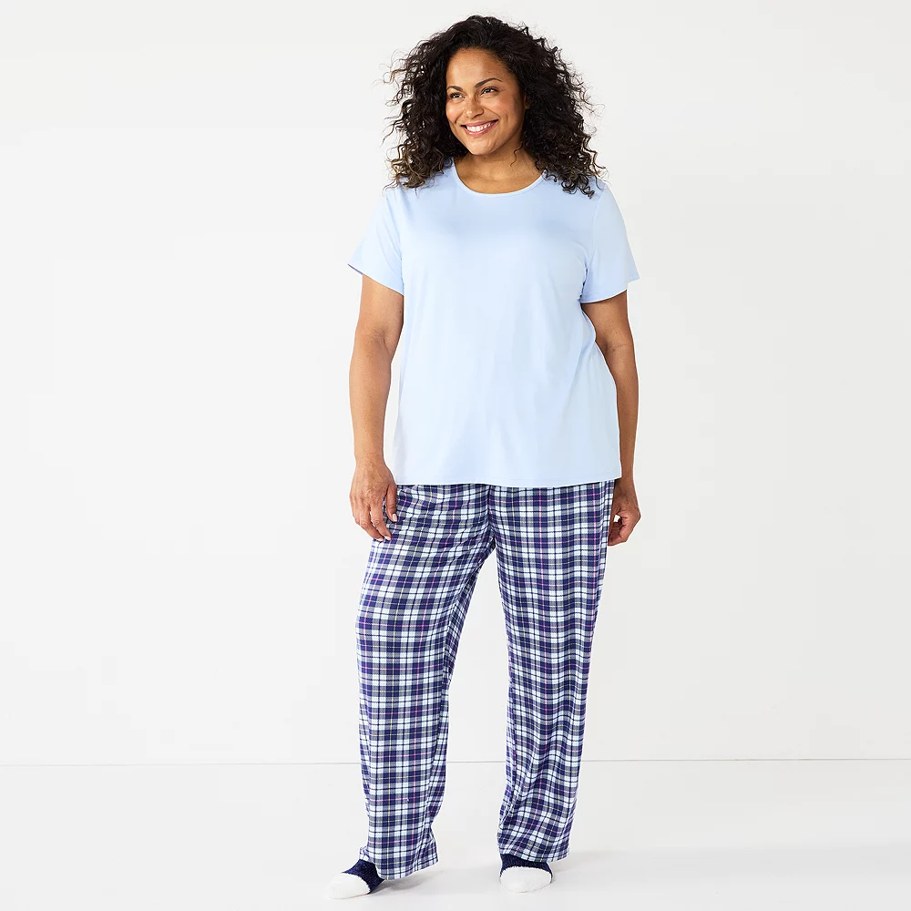 Coordinating and cozy, this women’s Croft & Barrow short sleeve pajama top and pajama pants sleep set will have you drifting off in complete comfort.