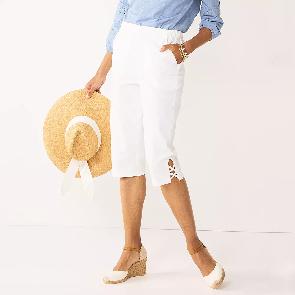 Upgrade your casualwear with these women’s Croft & Barrow skimmer jeans, featuring embellished hems.