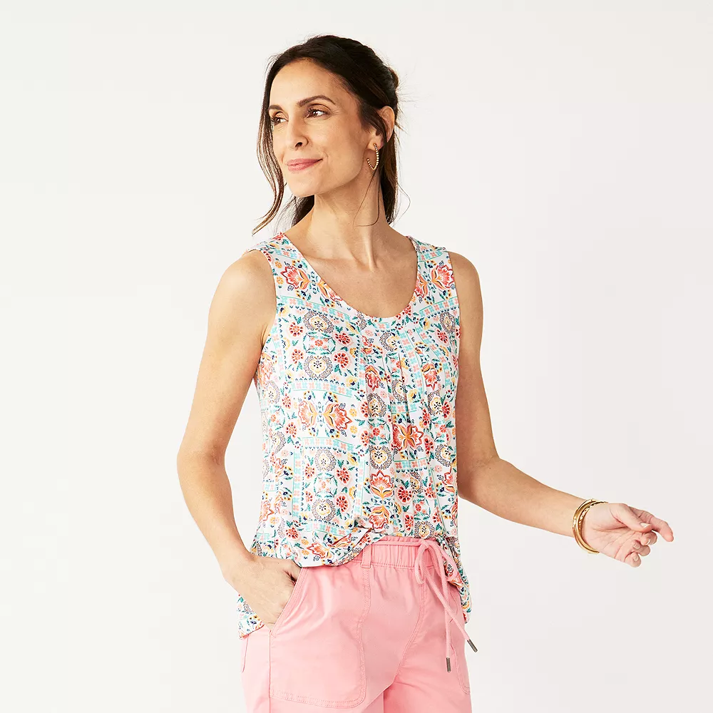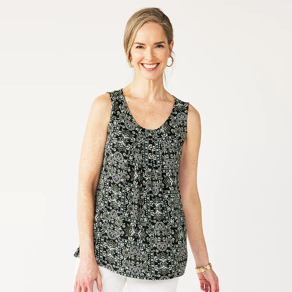 Pleated details and a draped design combine to give this women’s Croft & Barrow tank top a great casual look.