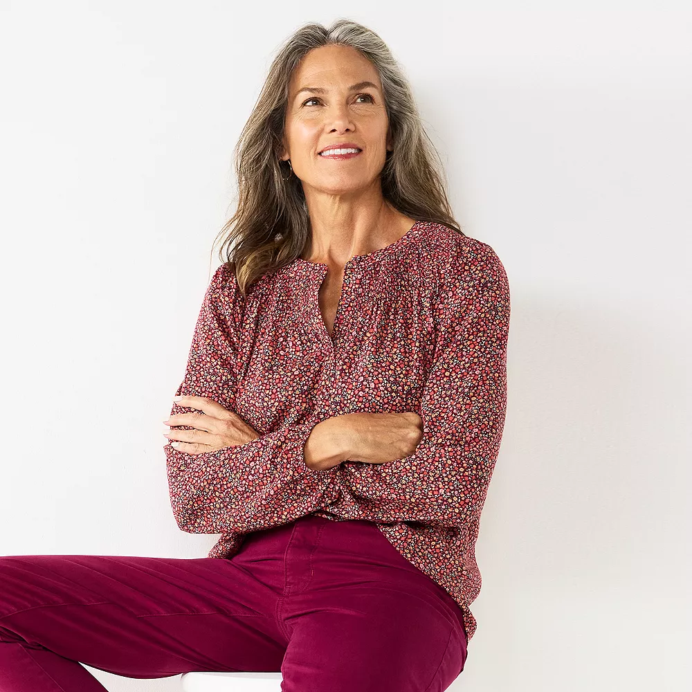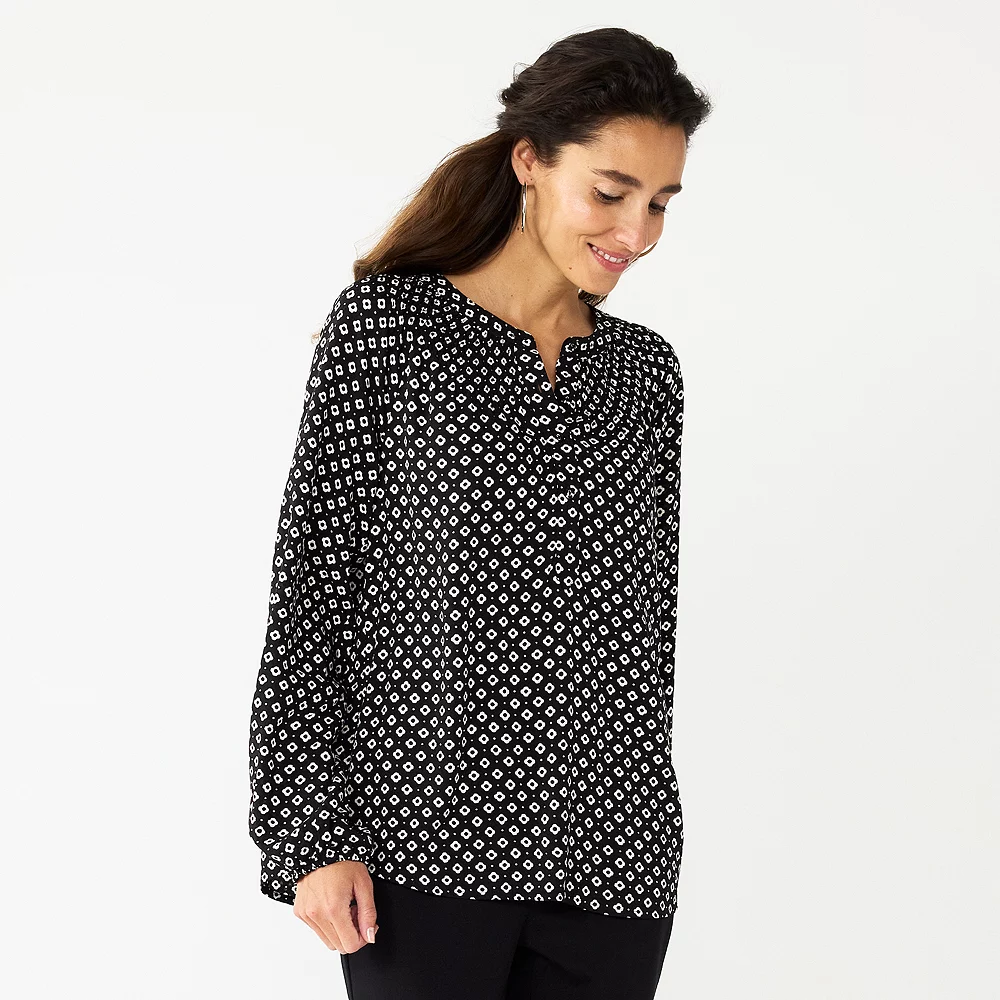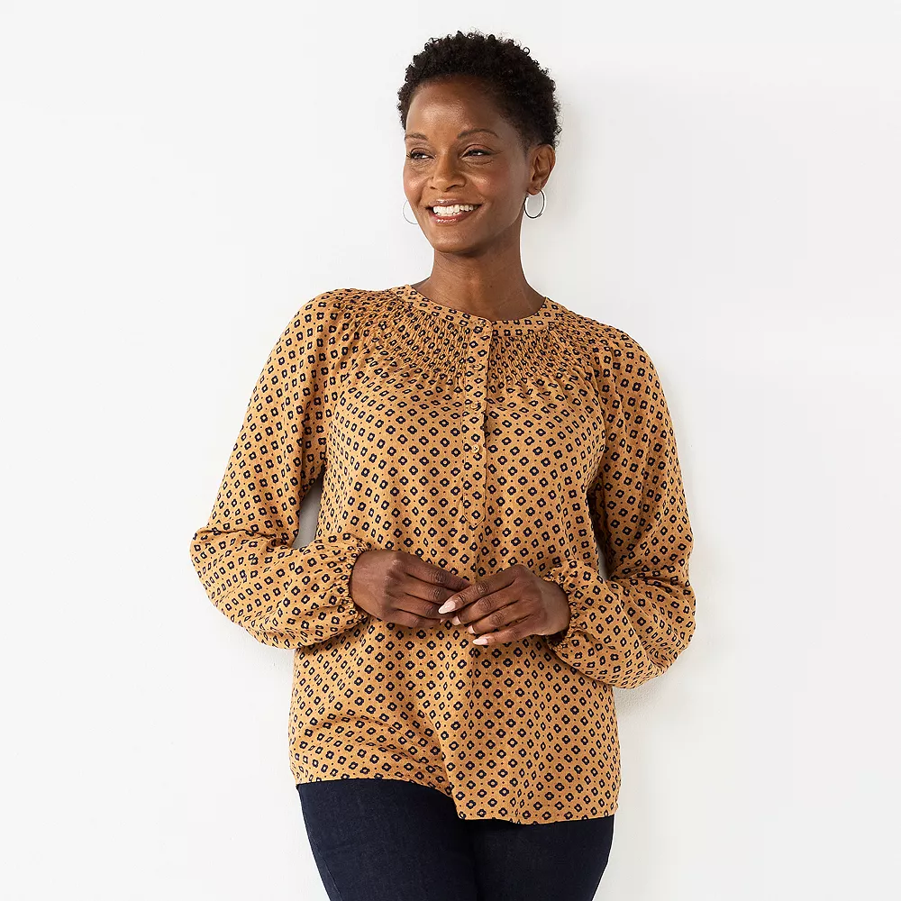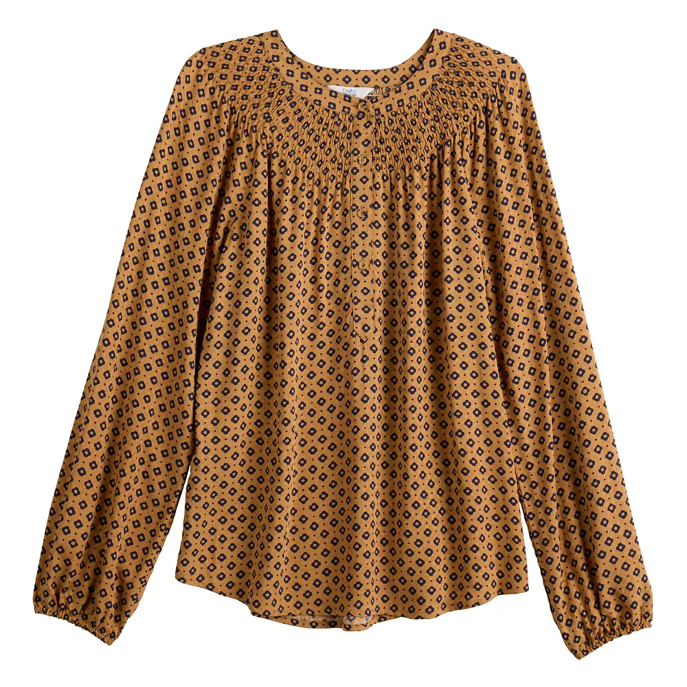 Laid-back yet polished, you’ll love the way you look in this women’s Croft & Barrow smocked peasant top.