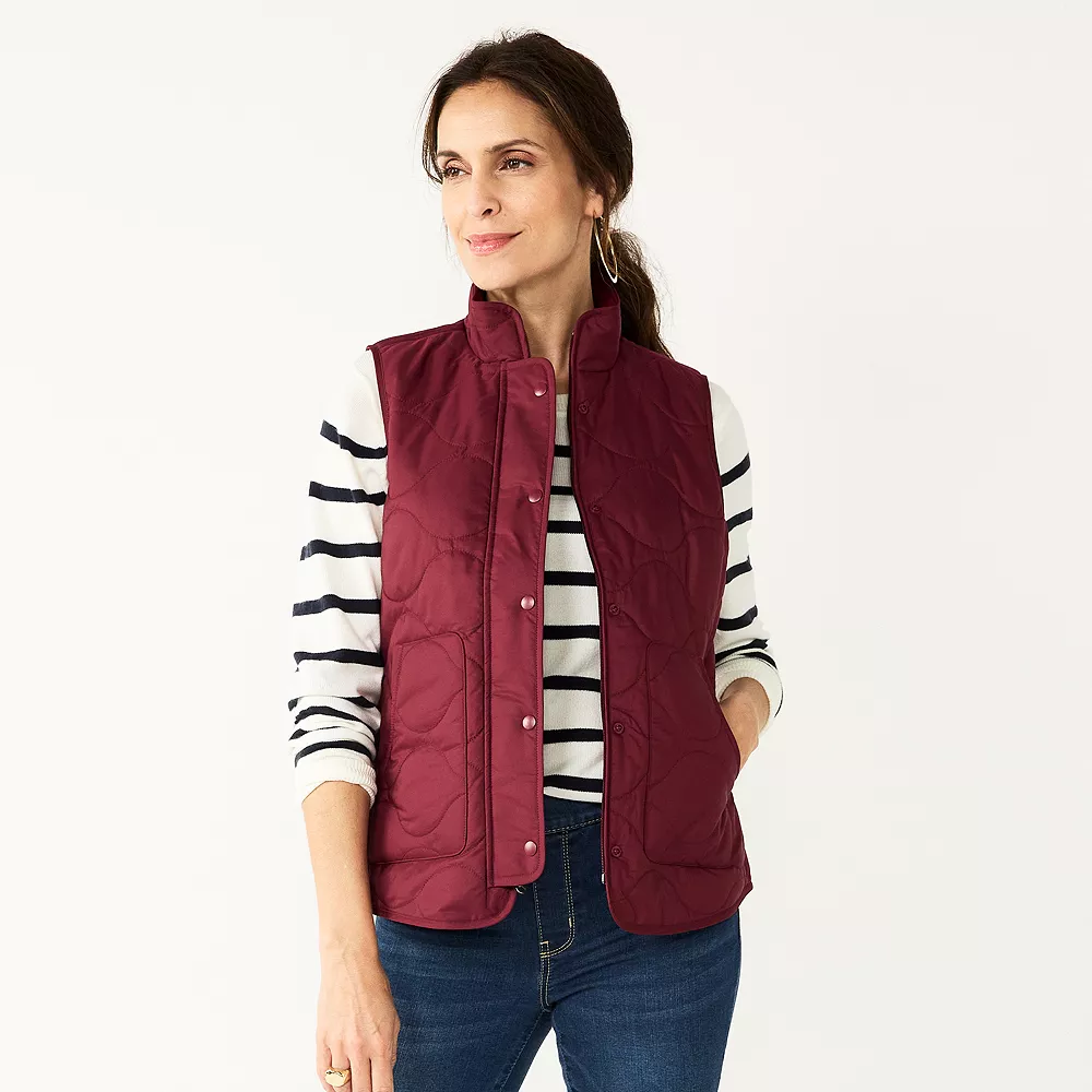 Welcome cold weather with this women’s Croft & Barrow quilted fleece vest, featuring fleece lining.