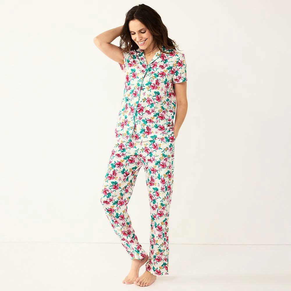 Cozy up in complete comfort with this women’s Croft & Barrow matching short sleeve pajama shirt and pajama pants sleep set.